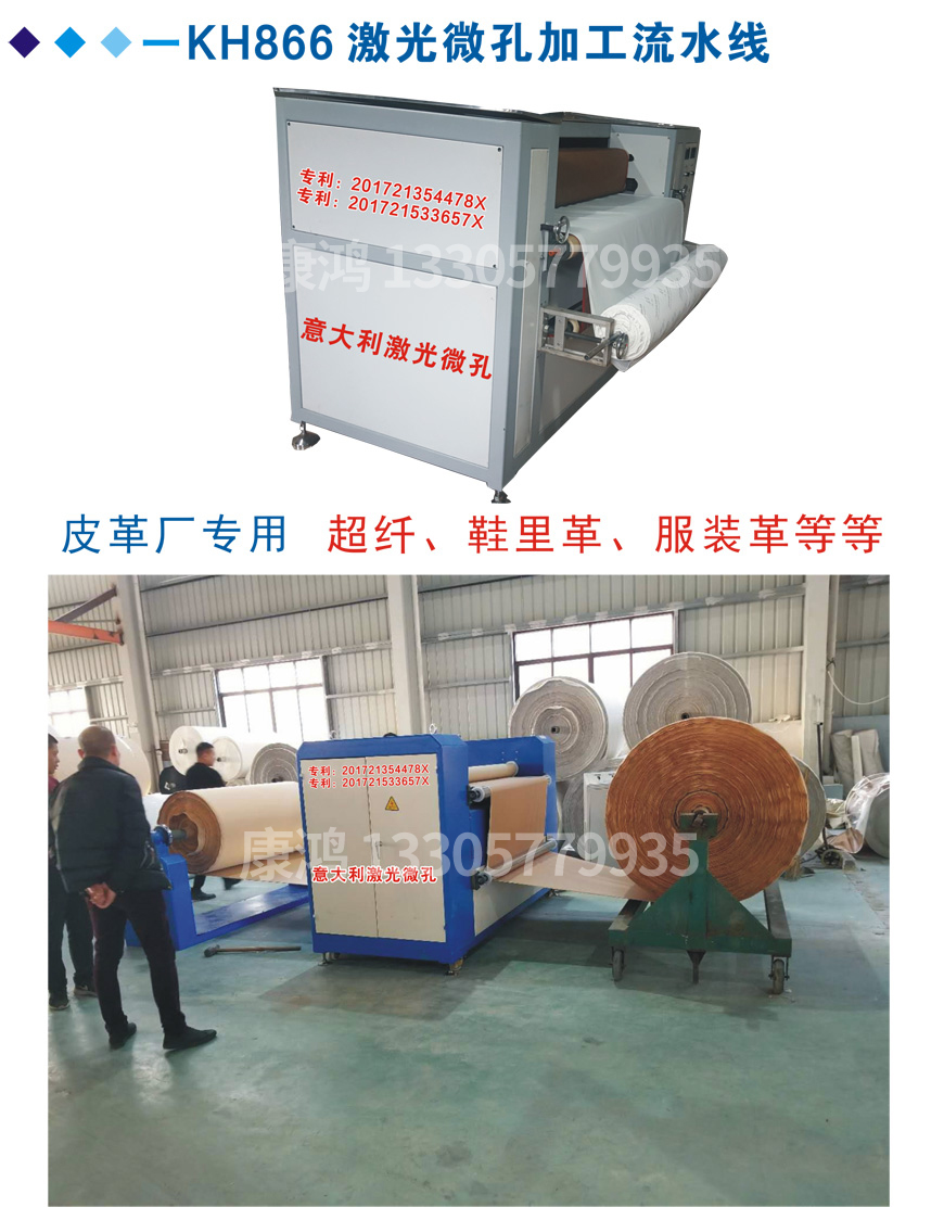 康鴻微孔技術(shù)可以保證在加工過程中零損耗;無任何廢棄物及污染。全方位克服了傳統(tǒng)化學(xué)透氣工藝中產(chǎn)生的環(huán)境污染、透氣性不穩(wěn)定、耐刮性差、整體物理性能下降等嚴(yán)重缺點,大大提升了皮革及各類合成革的品質(zhì)。(優(yōu)點: 鞋子不臭腳、皮褲穿起更舒服達到真皮透氣效果)